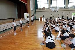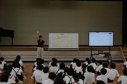 各学年から一人ずつ、1学期がんばったことの発表をしました。1学期にできるようになったこと、チャレンジしたこと、うれしかったことなど、なにも見ず、みんなに聞こえる声で発表していました。一人一人、この1学期で大きく成長したことが伝わってきました。聞いている子ども達もしっかり聞いて、温かい拍手を送っていました。