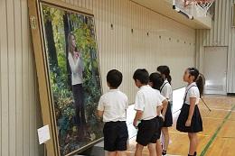 いつもの体育館が美術館に変身・・・ということで、たちばなっ子の目もキラキラ。美術館の所蔵品(絵画・彫刻・浮世絵など13点)を学芸員の方と一緒に作品鑑賞を行い、想像力を広げながら作品を鑑賞する楽しさを味わいました。作品に見入るたちばなっ子・・・まさに「芸術の秋」となった一日でした。