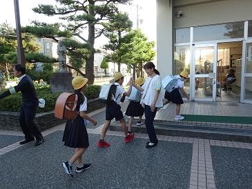 2学期から、「おはようございます」とともにハイタッチをする取組をしています。子ども達は、玄関前に立ってくださっている議員さんや教育委員会の方、地域の方にもハイタッチをして元気にあいさつをしていました。自然と顔が上がって笑顔になっていました。