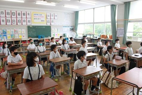 8月31日(火)、2学期の始業式が行われました。校長先生のお話と、保健の遊佐先生から健康に関する「8つのやくそく」についてのお話がありました。オンラインでの始業式となりましたが、それぞれの学級の真剣な姿が画面越しでも伝わってきました。