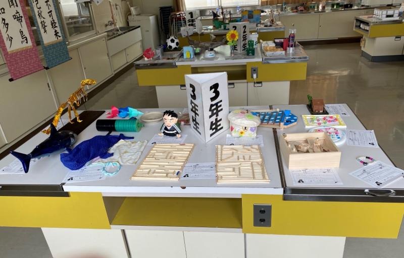 夏休み、一生懸命取り組んだ工作や自由研究、作品が数多く並べられました。お家の方のご協力ももらいながら、取り組んだんだろうなあと思う大作も多く、素晴らしい作品展となっています。