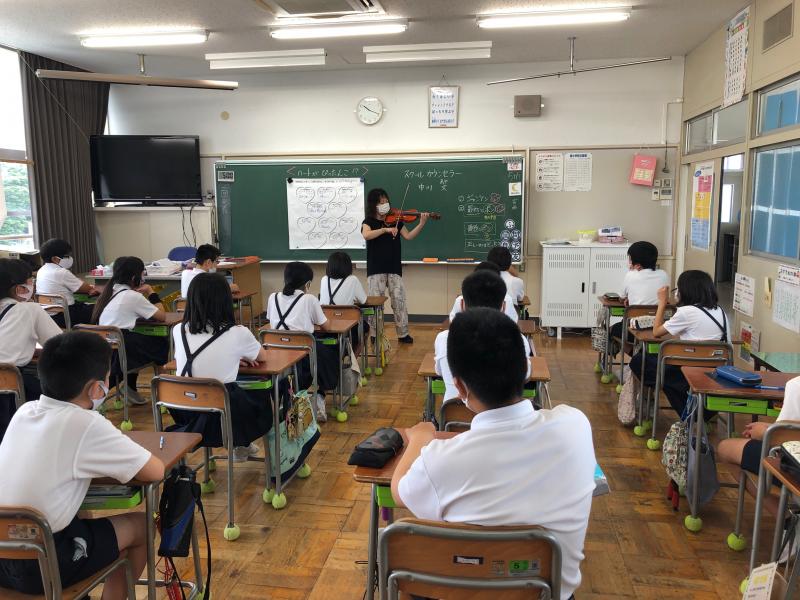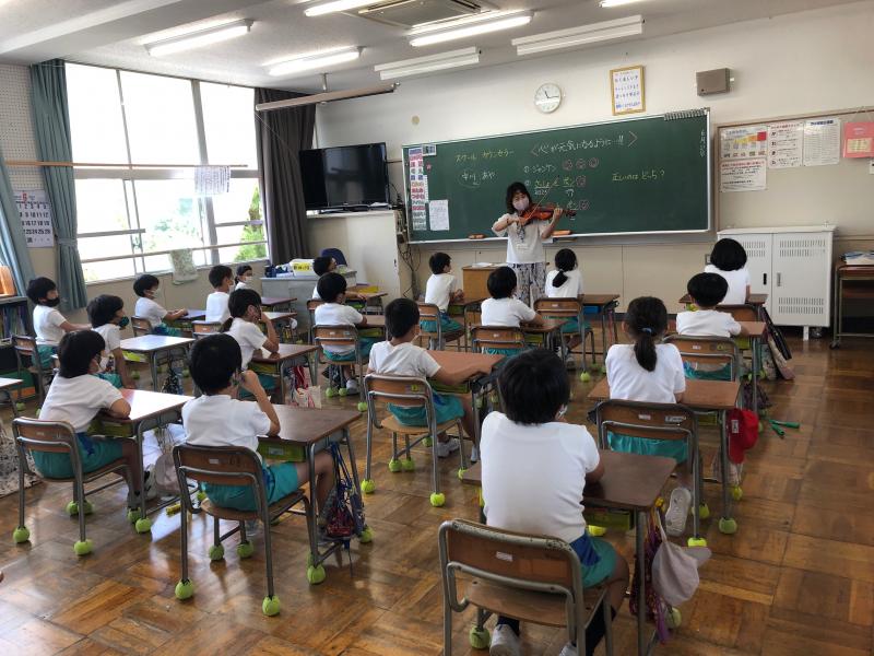 エンカウンターやコグトレの他、「言ってもいい言葉かな?」など、よりよい関わり方についても学びました。そして、美しい物を見たり聞いたりすると元気が出ると言うことで、バイオリンの演奏も聴かせてくださいました。素敵な音色に、素敵な時間を過ごすことができました。