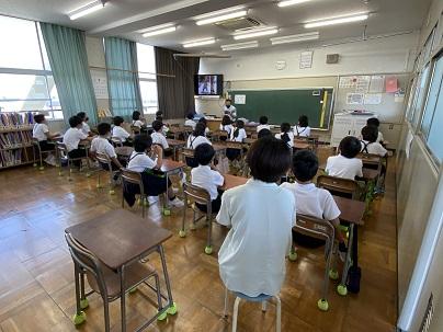 広島県で行われている平和記念式典に合わせ、平和学習を行いました。8時15分に各教室で黙祷をした後、放送で平和について校長先生のお話があり、全校で「平和の子ら」を歌いました。また、各担任の先生から、戦争について考える絵本の読み聞かせをしました。子どもたちが真剣に平和について考えている姿が見られました。