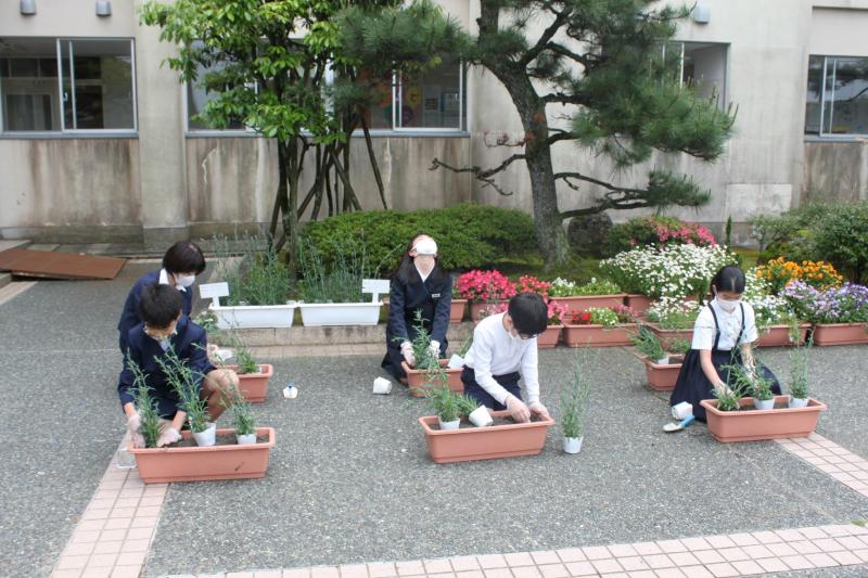 町からご寄付いただいた町の花「かわらなでしこ」が満開