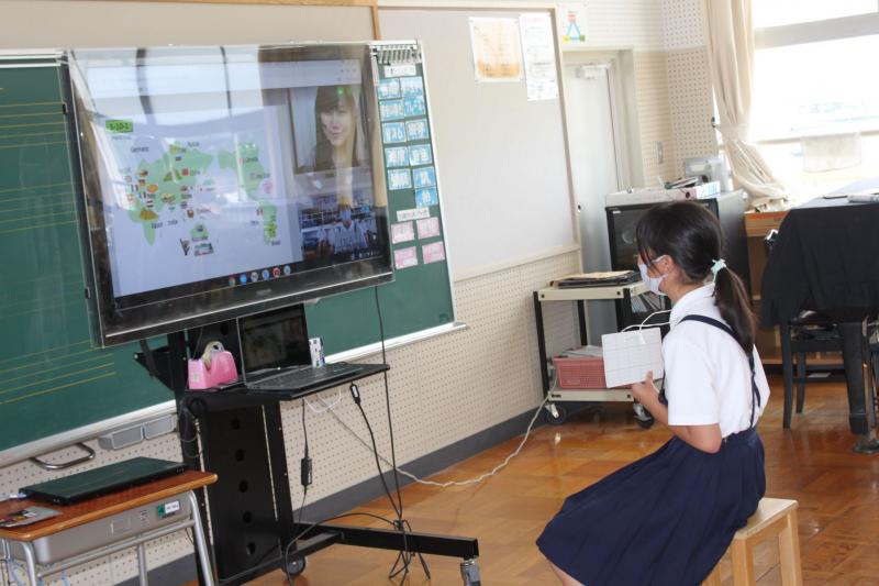6年生がフィリピンの先生とオンラインで英語であいさつを交わしたり会話を楽しみました。5年生の時に一度経験したとは言え、みんな緊張の中、一生懸命に聞き取り、準備していた答えを英語で伝えたり、クイズや質問に英単語で答えたり、先生のまねをして文で言ったりしました。一対一で受け答えの場面もあり、外国の方と英語でのコミュニケーションを楽しむ貴重な経験となりました。