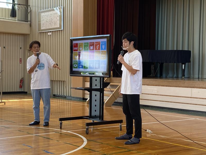 お笑いや〇×クイズを通してSDG'sについての理解を深めたり、テーマにそった発想を元に今できることを考えたりしました。世界のゴミ焼却場の7割が日本にあることや、世界の男女平等ランキングが世界120位というのにも驚きました。また、40人に3人の割合の人が紛争地域に住み、7人がその影響を受けていると言うことも衝撃的でした。
