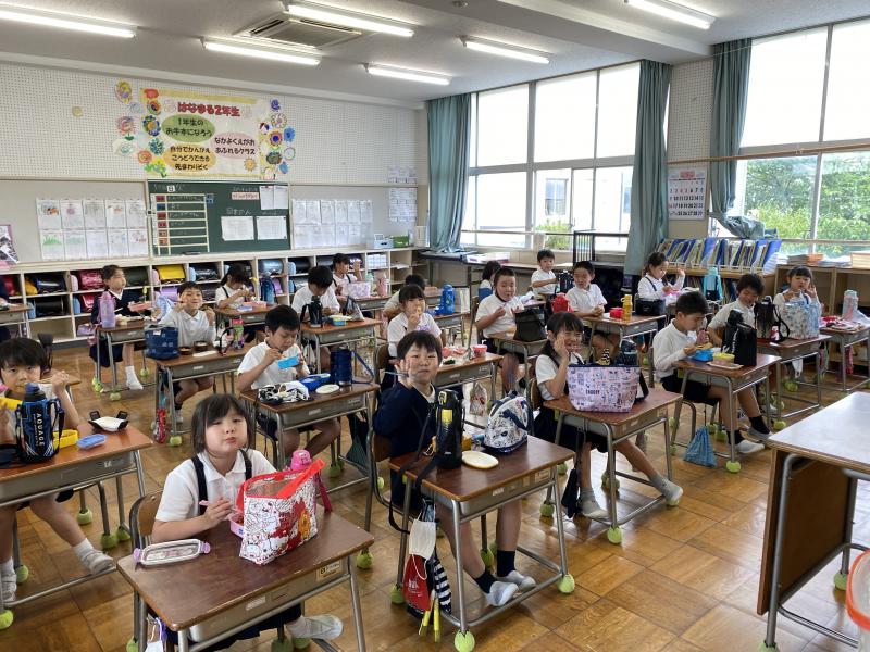学校で食べるお弁当、こんな日もあってもいいかなと思うくらい、みんなとてもうれしそうでした。おいしいお弁当、ありがとう!