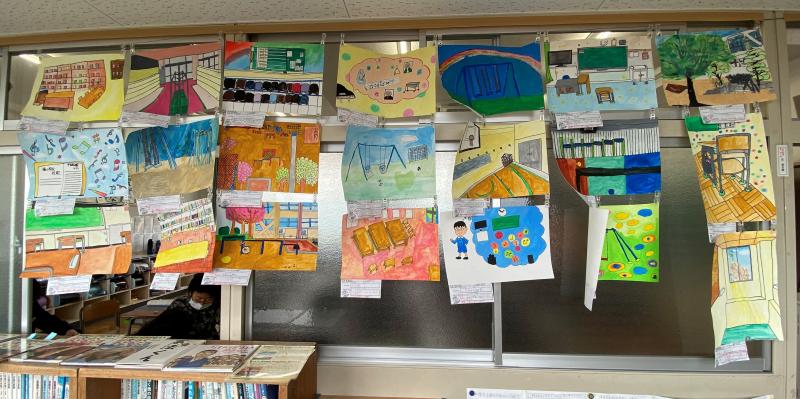 各学年、図工等で取り組んだ作品を掲示・展示してあります。