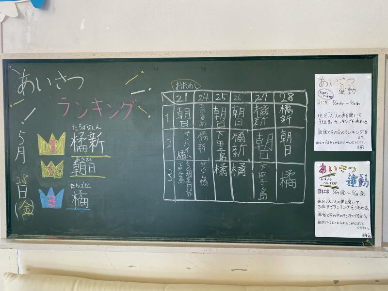 ・1日目と比べて、明るく大きな声であいさつする人がとても増えてきました。地区ごとに大きなあいさつができるようになったり、今までよりあかるいあいさつが増えたり、学校がすごく良くなりました。