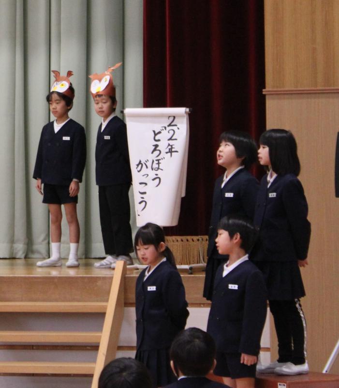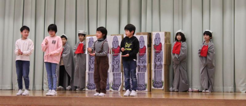 2年生の元気いっぱいの演技と、絵本から飛び出したようなおもしろいおはなしに、みんな大笑い!