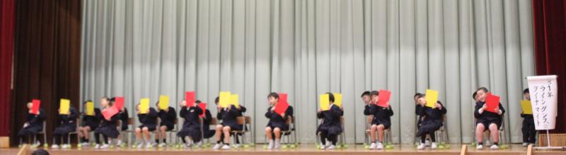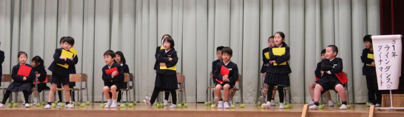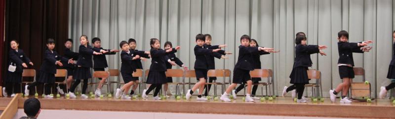 今年の運動会で、5・6年生が踊った「ダイナマイト」をラインダンスで披露!「い234・・・」のかけ声とともに、息の合ったダンスで民あを楽しませてくれました。ノリノリでかっこよくおどる1年生に合わせ、自然に拍手が起き、会場全体がノリノリになりました。