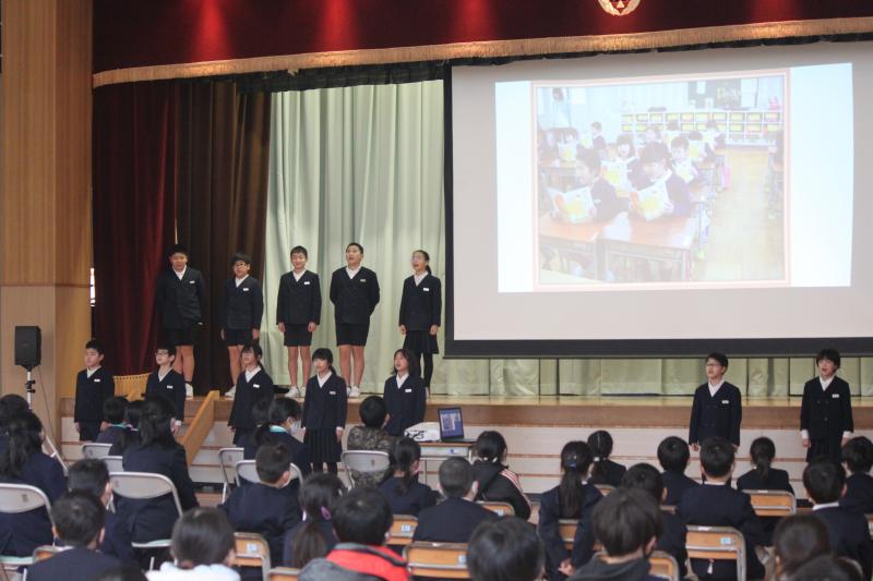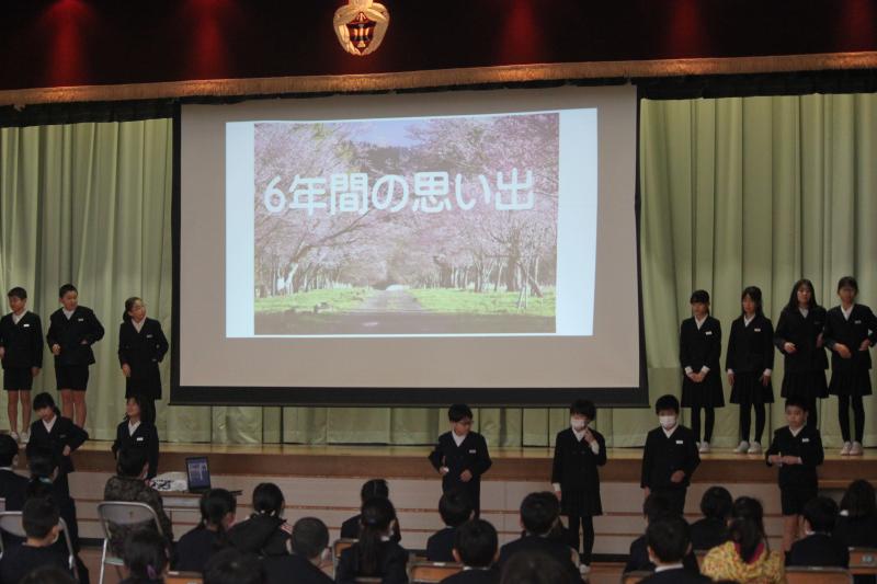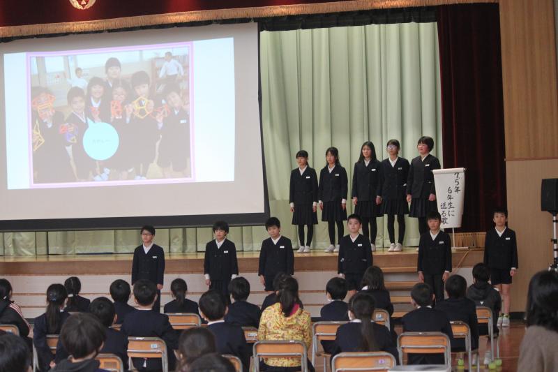 企画・準備・運営をがんばって行い、6年生の思い出のアルバムを背景に、歌を送ってくれた5年生。6年生に楽しんでもらおうと、一人一役を責任を持って果たし、5年生はこの送る会を通して、成長した自分に出会えたようですね。