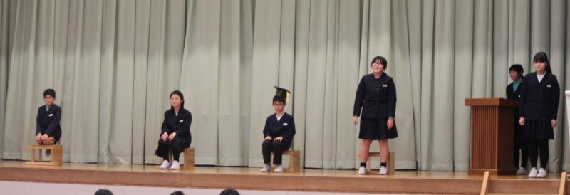 6年生のお礼の出し物は、6年間の思い出を劇にした物でした。自分達で台本を作り、大道具なども作成し、時間のない中練習し、発表してくれました。