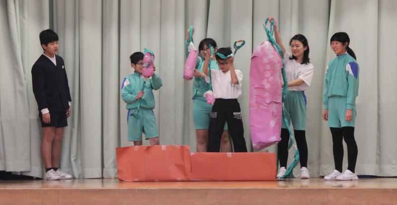 6年生が3年生の時にした劇の続編と言うことで、6年生はとても楽しみにしてくれていたようです。6年生へのクイズもあり、懐かしさと、新しいネタで、民あを楽しませてくれました。