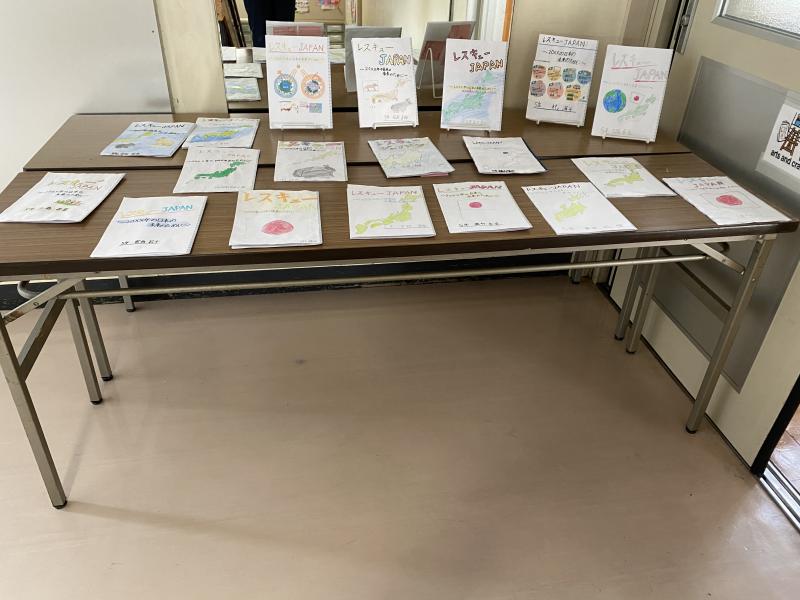 そして、「レスキューJAPAN ~20xx年の日本の未来のために~」と題し、環境問題や福祉等の中からテーマを選びました。そして、グラフや表などの資料を使って実態を詳しく説明し、課題について訴え、自分達にできることを考え、リーフレットにまとめました。