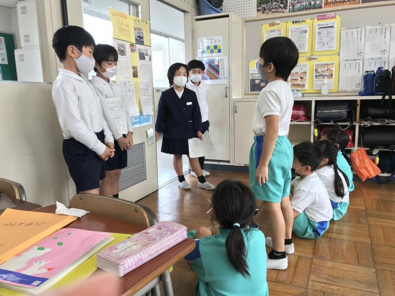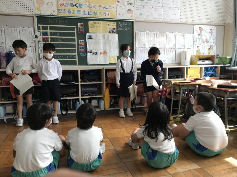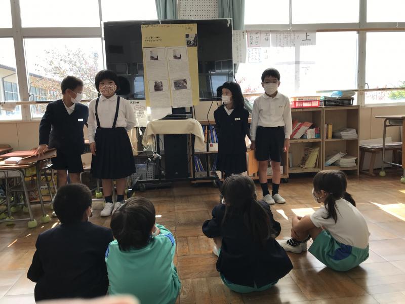 2年生:10月14日にした町探検の学習を 11月4日は1年生に発表