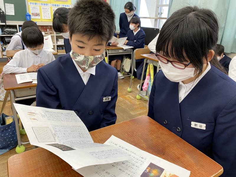 11月20日 4年生と6年生がお互いの国語の成果物を交流