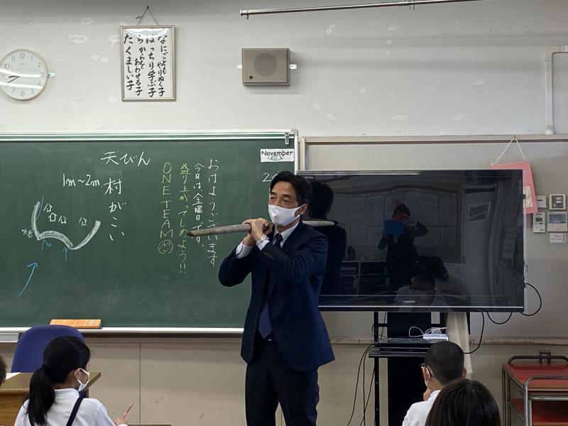 11月20日(金)昨年度に引き続き、竹本先生をお招きし、4年生が、この橘校下を襲った「昭和9年の大水害とその後の復興」について学習しました。