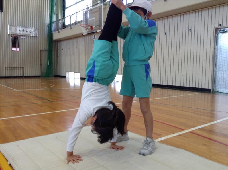 すごい技を見せてもらった後だから、1年生も4年生に教えてもらったり,補助してもらい,いろいろな技にチャレンジしていました。