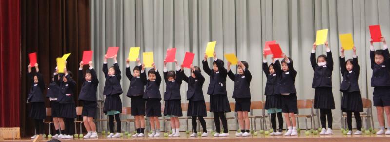 今年の運動会で、5・6年生が踊った「ダイナマイト」をラインダンスで披露!「い234・・・」のかけ声とともに、息の合ったダンスで民あを楽しませてくれました。ノリノリでかっこよくおどる1年生に合わせ、自然に拍手が起き、会場全体がノリノリになりました。