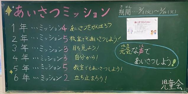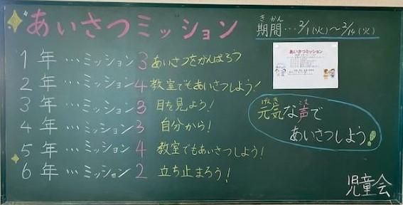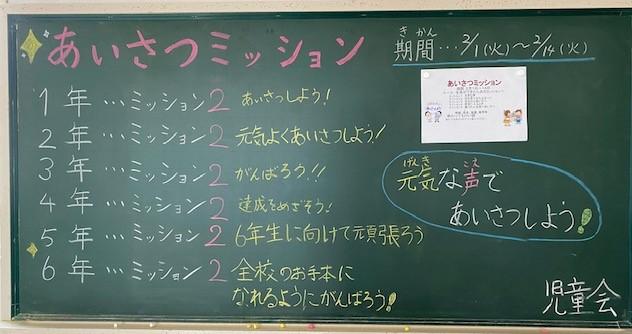 2月1日~14日まで、児童会の企画で、ミッションを学年の全員ができたら、次のミッションへレベルアップという形で、「あいさつミッション」に取り組みました。