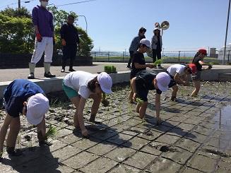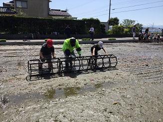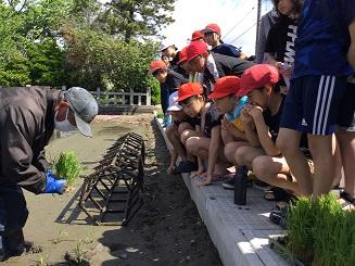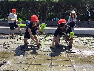 説明をしっかり聞き、泥だらけになりながらも苗を植えていました。