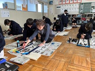 地域の山本先生に、毛筆指導をしていただきました。