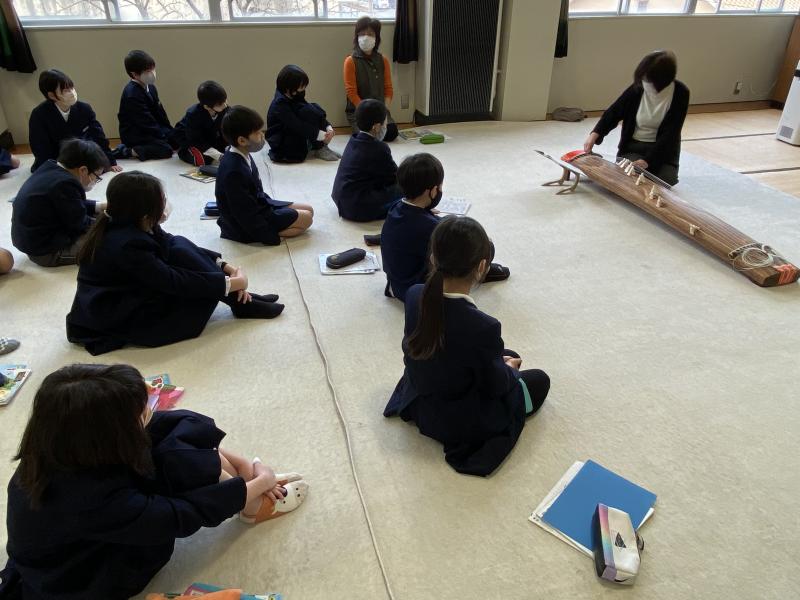 3月3日(木)桃の節句 おひなさまの日に、4年生は、音楽でお琴教室がありました。