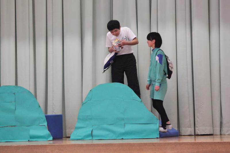 6年生のお礼の出し物は、6年間の思い出を劇にした物でした。自分達で台本を作り、大道具なども作成し、時間のない中練習し、発表してくれました。