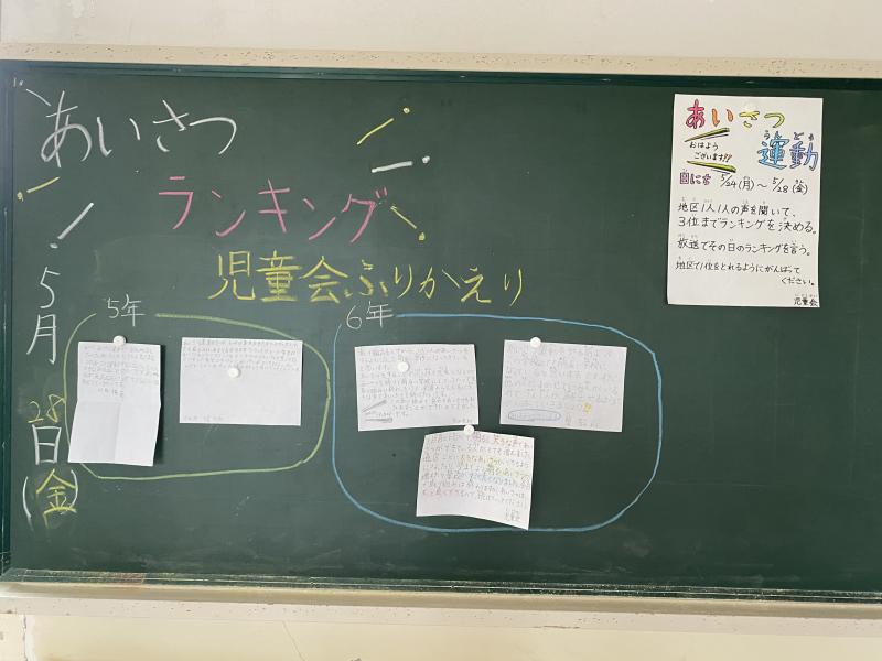 ・1日目と比べて、明るく大きな声であいさつする人がとても増えてきました。地区ごとに大きなあいさつができるようになったり、今までよりあかるいあいさつが増えたり、学校がすごく良くなりました。