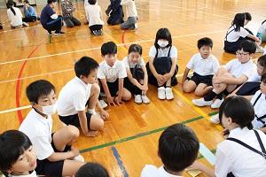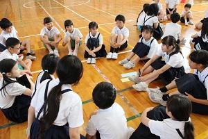 縦割りはげましグループで、「良い失敗」と「悪い失敗」について話し合い、6年生がグループの考えを発表してくれました。どのグループも輪になって、1年生から6年生までみんなで考え話し合っていました。