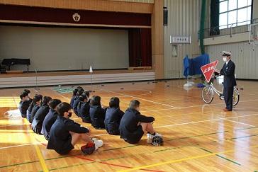 6年生が、来年度の川北中学校への自転車通学に向けて、安全な運転などについて説明を受けました。