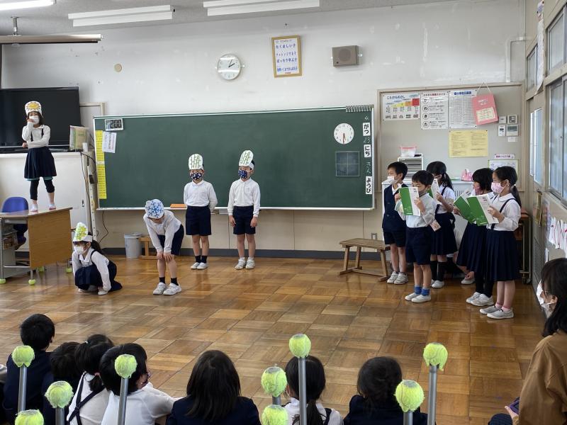2年生が、1年生に音読劇「ふきのとう」の発表をしました。