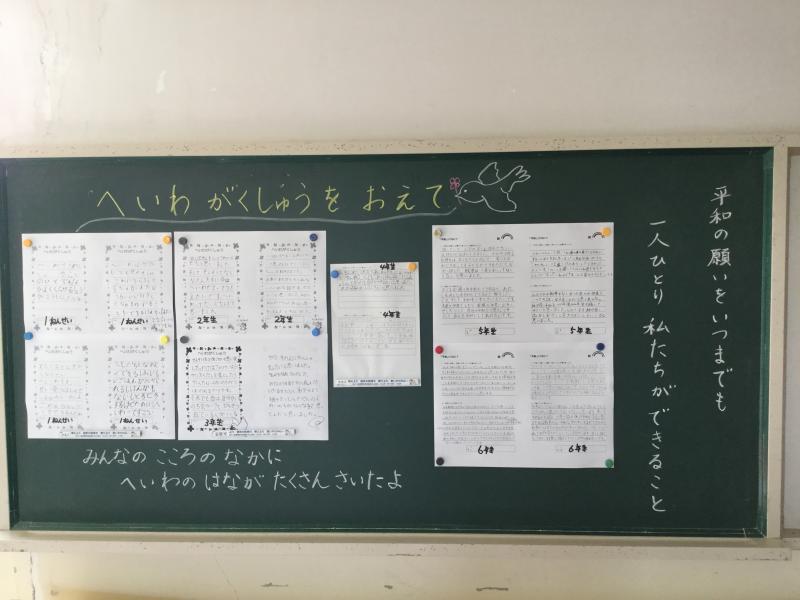 8月6日 平和集会 平和学習で心に平和の花を咲かせました。