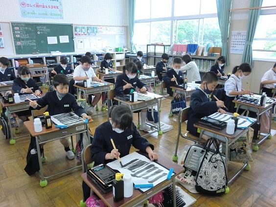 地域の山本真弓先生から、毛筆の指導を受けました。