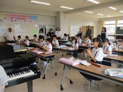 音楽の授業風景です。誰もが耳にしたことのある昔から親しまれてきたかっこいい曲です。合奏は、あわせる難しさと楽しさがあります。楽しさを味わうために、子供達も各パートに分かれて一生懸命に練習していました。