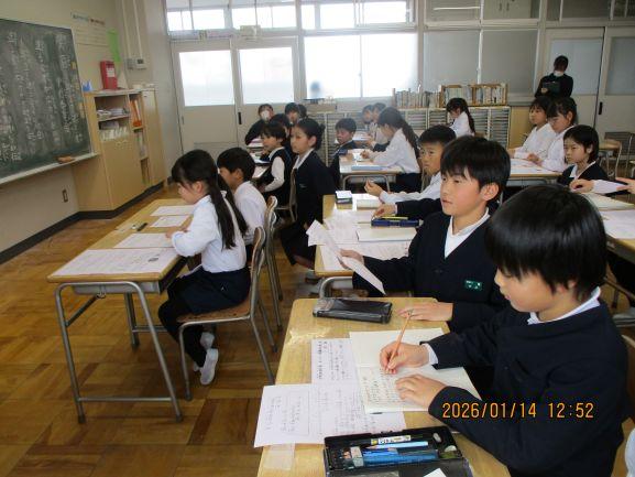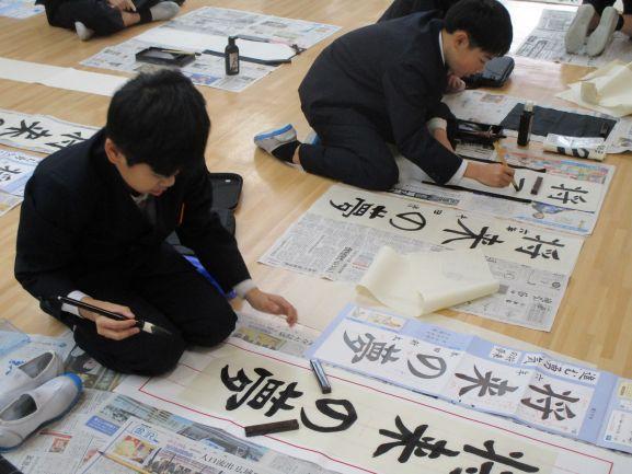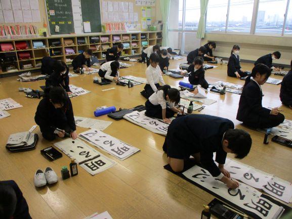 さて、新年の一番初めの授業といえば「書き初め」です。どの学年の子供達も、集中力を高めて取り組んでいました。
