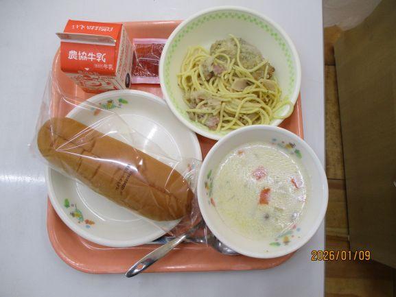 新学期が始まって2日目。寒さに負けず、子供達は授業も給食も楽しんでいました。今日の給食は、クラムチャウダーとスパゲッティ。おかわりもしながら、もりもり元気に食べていました。