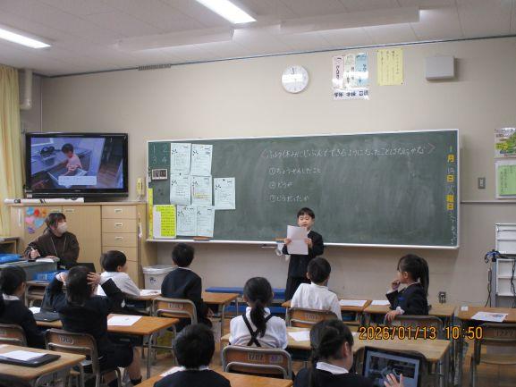 1年生は、上記について、「じぶんでできたお手伝い」の動画を見せあいっこしながら発表会を行っていました。おうちの人が喜んでくれたこと、頑張って嬉しかったこと、これからやってみたいことなど、自信満々のキラキラ笑顔でお話ししている姿がすてきでした。