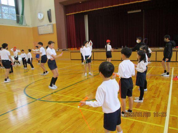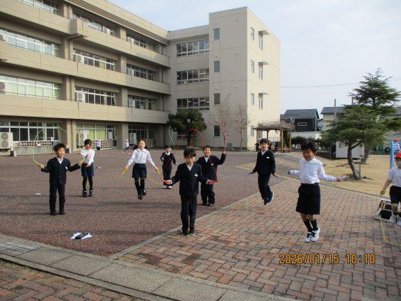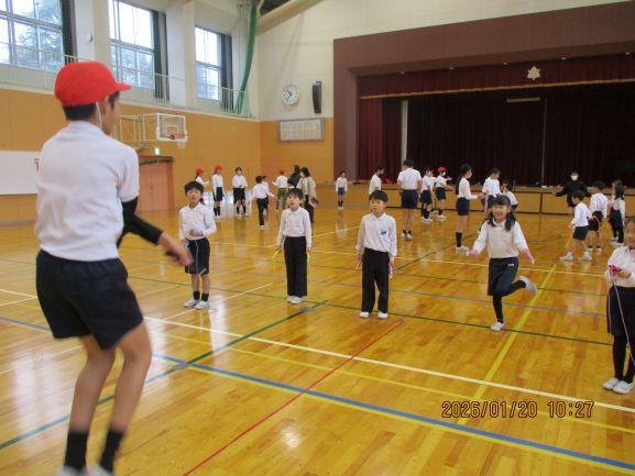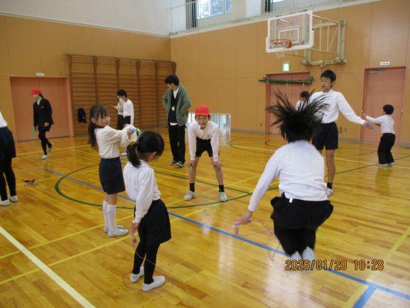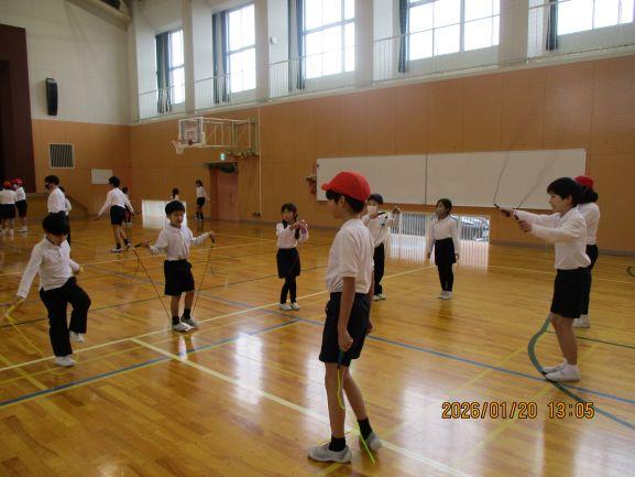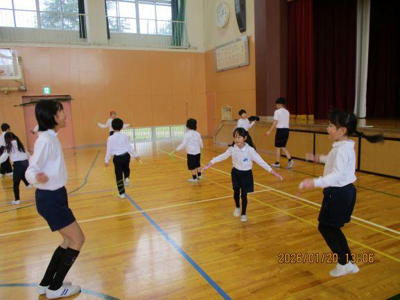 冬の体力づくりの運動として、なわとびの取組を行っています。体育の時間や休み時間も元気いっぱい、連続回数や新しい技に向けて練習を楽しんでいます。「みてみて!できるようになった!!」「みてみて、こんなことできるよ!!」と最高の笑顔を見せてくれたり、「なかなかできない、難しい」と言いながら何度も挑戦する真剣な表情を見せてくれたり、とってもすてきな子供達です。