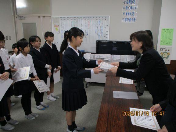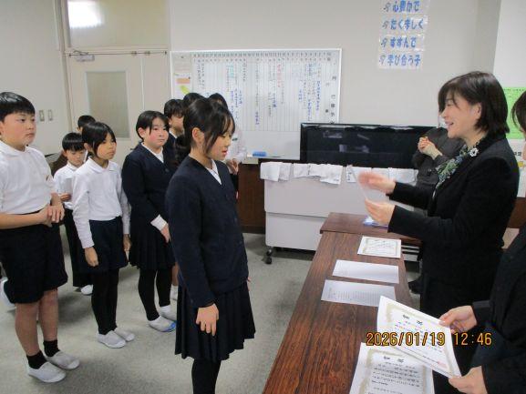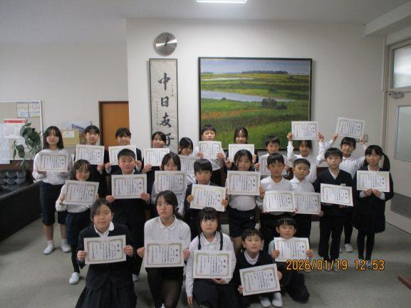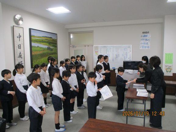 今年度の読書感想文コンクールにおいて、入選4作品と佳作13作品が選ばれ、本日校長室で表彰式を行いました。読書感想文は、作品をしっかりと読み込み、作品のテーマと自分の考えを関連させながらまとめていくものです。作品をまとめていく過程で、豊かに想像したり思いを表現したりとたくさんの学びもあったのではないかと思います。これからも豊かな読書生活をしていって欲しいと思います。あわせて、先日の硬筆書写コンクールの表彰式でお休みしたお子さんへの賞状も渡しました。受賞者の皆さん、おめでとうございます!