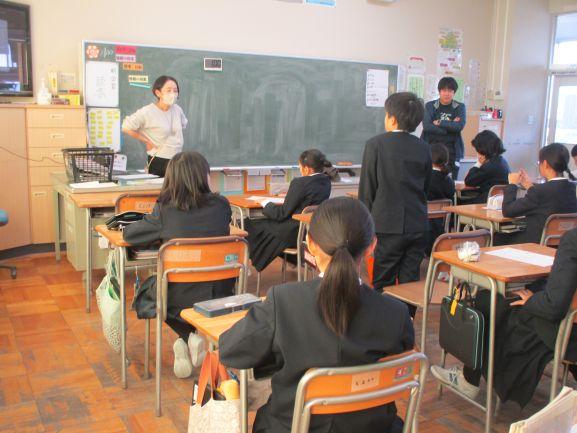本日、布水中生徒会の生徒3名が館野小学校を訪れ、中学校の学校行事や勉強、部活動、友達づくりなどについて説明をしてくれました。質問では「中学校は、給食ですか弁当ですか」「部活動をやめたくなったらどうする?」「成績表はどんな評価?」など気になったことを聞いていました。また「部活動に入らずクラブチームに入る場合は、友だちはどんな風につくればいいの?」という質問に対しては「授業の中で、ペアやグループ活動をするので自然と友達はできますよ」と答えてもらっていました。このほか、野々市市教委からは「部活動の地域展開」についても説明をしてもらいました。