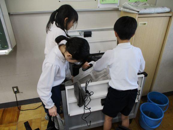 昨日の3年の「学習、理科の「かげと太陽」の様子です。「かげはどこにできるか確かめる」という学習中、にわかに太陽が差し出したので運動場に出て、遮光板で太陽の様子を観察したり、太陽と影の位置について実際に確かめたりしていました。夢中になって学んでいる姿がすてきでした!また、影を使って、影ふみや影送りなどをして楽しみました。実際に自分の目で確かめることの大切さや楽しさ、そして、空を見ることの楽しさを味わうすてきな学習場面でした。
