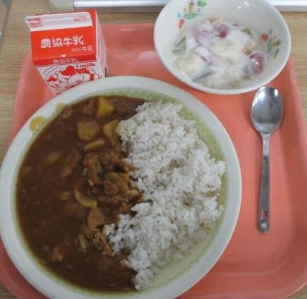 今日の給食は、麦ご飯・ポークカレー・フルーツヨーグルト、子供達の大好きなメニューでした。12時25分くらいに1年生の様子を見に行くと、「おいしかったよ~」「おかわり3回もした!」の声と大満足の表情が。既に空っぽのお皿もありました。給食のカレーで、午後も元気いっぱいに過ごします。