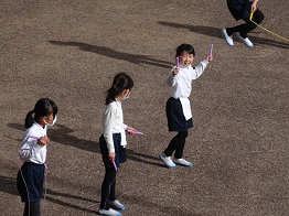 昨日から2月24日までの期間、全校でなわとびの取組が始まりました。体力アップにつなげるとともに、競い合ったり励まし合ったりしてかかわりを増やしていきたいというねらいを持っています。今日は5年生が体育の授業で、晴れ間の見えた昼休みには2~4年生がカラータイルでなわとびをしていました。他にも各クラスで長なわにも挑戦します。なわとびは調整力を鍛えることに適しているとも聞いたこともあります。頑張ろう、たちのっ子!
