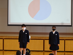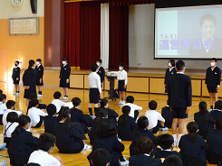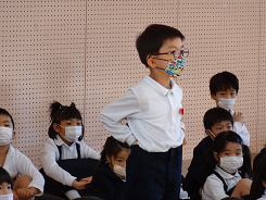 昨日に引き続き今日は4~6年生のクラス代表が2学期がんばったことを発表してくれました。うさぎのお世話で、ふんを片付けることも大切だと実感したということ。委員会活動は大変だったけれど、6年生に向けて一層がんばりたいなど、自分の頑張りが他の人や動物のためにもなることを実感している発表でした。さすが高学年の発表でした。