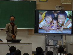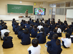 本日、6年生は総合的な学習の時間「テディベアプロジェクト」の学習で、フィリピンにて孤児院を経営する澤村信哉さんのお話を聞きました。食べた魚の骨を組み合わせてドラゴンをつくったり、竹のサクソフォーンをつくって音楽を楽しんだりと、身近なものを使って楽しそうに暮らしている孤児院の子たち。澤村さんのお話に6年生は引き込まれていました。「目の前の世界が世界のすべてではない。少し動けば世界は変わる。」広い視野を持ち、成長していってほしいと思います。