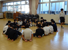 2学期最後の週ということで各クラスではお楽しみ会が催されています。1の2では「ことわざカルタ」を班でやっていました。4の1では体育館でフリスビーを使ったドッチボール「ドッチビー」をしていました。進行の練習中のクラスもありましたよ。