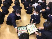 今年度最後の外国語の授業があり、ALTのシェボーン先生の発音をしっかりと聞き「How are you?」「I’m ~」の表現に親しんでいました。リズムに合わせてじゃんけんをし、ジェスチャーを入れながらお互いにコミュニケーションをとっていました。相手を大切にすることを実感することができましたね。
