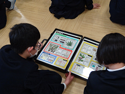 本日、6年生が白山警察署の職員から「薬物乱用防止教室」を行いました。薬物とは何か、薬物はどのような呼び名・形をしているのか標本を用いて学びました。様々な薬物をじっくりと観察し、自分で自分の身体を傷つけることにつながることを学ぶことができました。